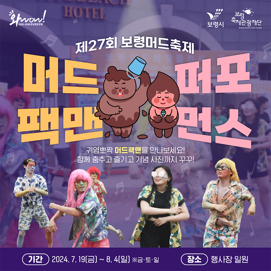 일시 : 2024. 7. 19.(금) ~ 8. 4.(일) 금토일 장소 : 머드엑스포광장