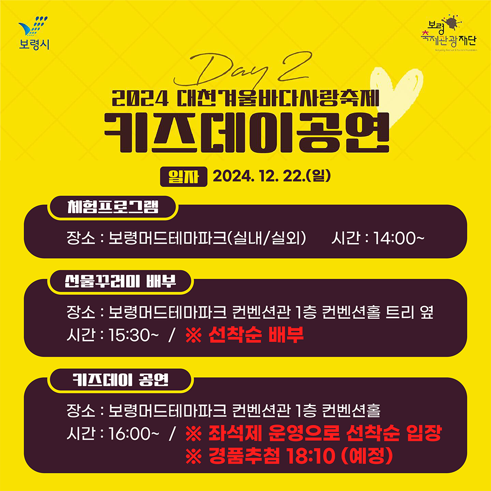 일시 : 2024. 12. 22.(일) 장소 : 보령머드테마파크 컨벤션관 1층