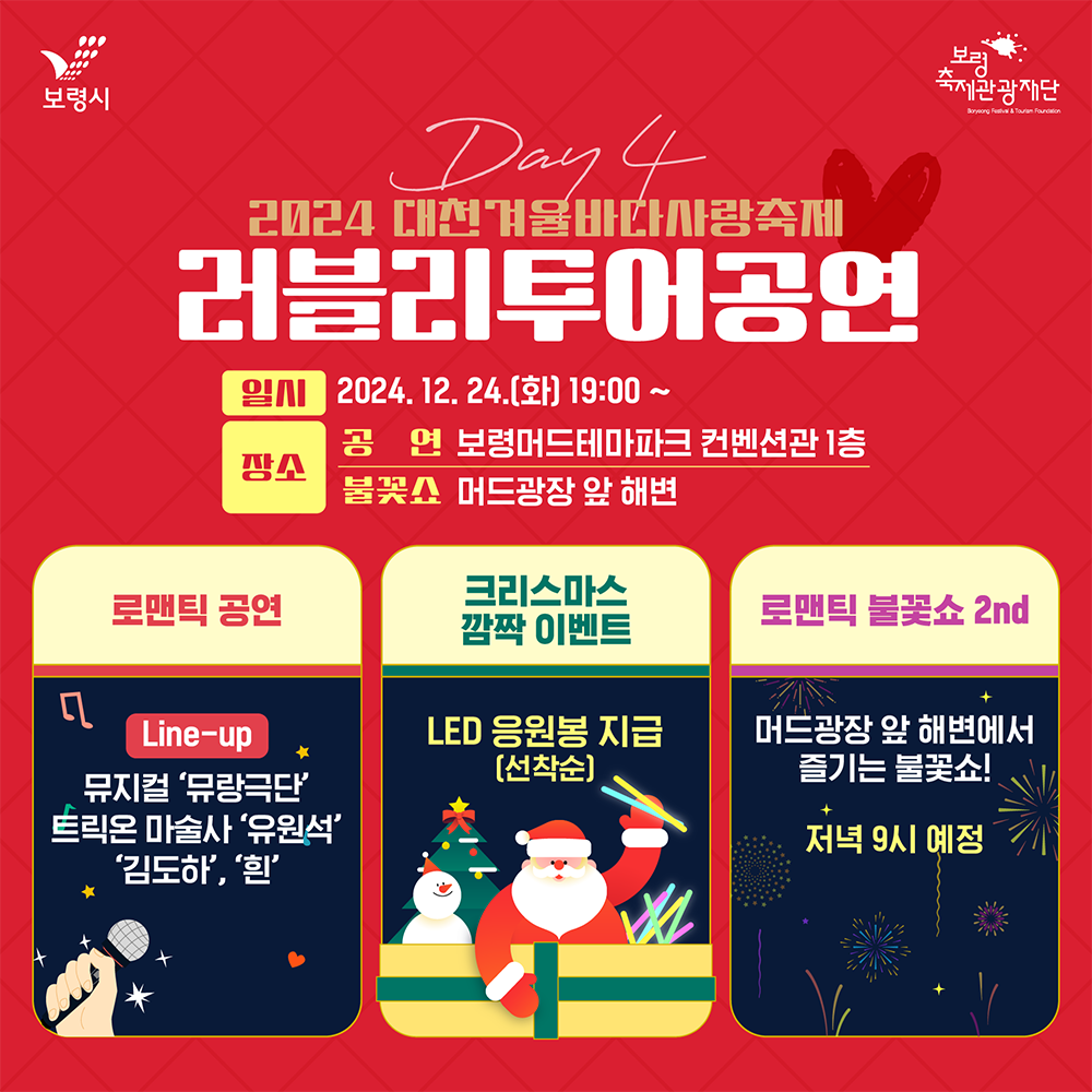 일시 : 2024. 12. 24.(화) 19:00 ~ 장소 : 보령머드테마파크 컨벤션관 1층
